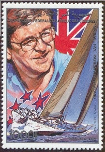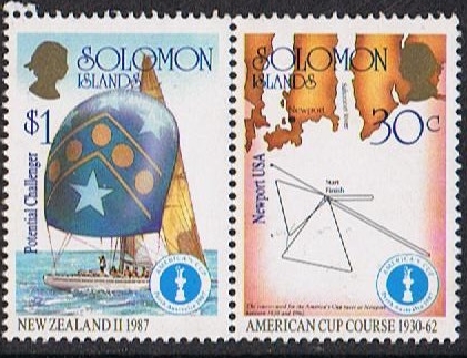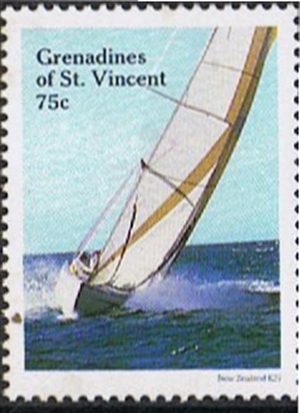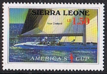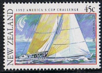 The only yacht of the three which took part in the 1987 America Cup eliminations was the KZ 7 and most probably she is depict on this stamps given below.