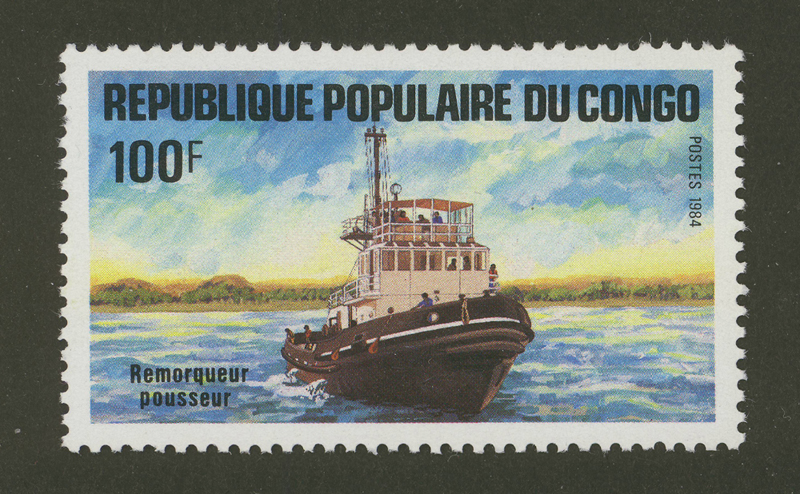 I am looking for a name to be put on this tug. It is a French-desgned and built tug but I cannot figure out what it is doing in a Congo stamp - since to my knowledge a tug of that design never operated in the Congo.