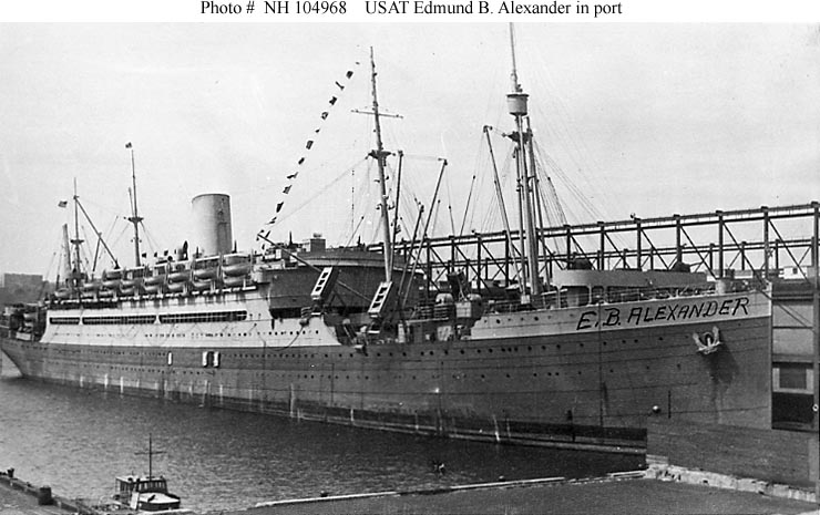 In late 1940, as part of the National defence expansion undertaken in response to the Second World War, the thirty-five year old passenger liner America (formerly USS America (ID 3006) and USAT America) was reactivated for U.S. Army service. Renamed Edmund B. Alexander, she initially served as a barracks ship at St. John's, Newfoundland. After mid-1941 the ship was used as a transport in the Gulf of Mexico area and in May 1942 entered a Baltimore, Maryland, shipyard to begin a major modernization. This work, completed in April 1943, gave her new, oil-fired boilers, greater speed, and a much-changed appearance. Edmund B. Alexander spent the rest of the World War II era making transport runs between the United States, North Africa and Europe. She continued her work with the Army into the post-war era, primarily carrying military dependents. Placed in reserve in May 1949, USAT Edmund B. Alexander was sold for scrapping in January 1957.