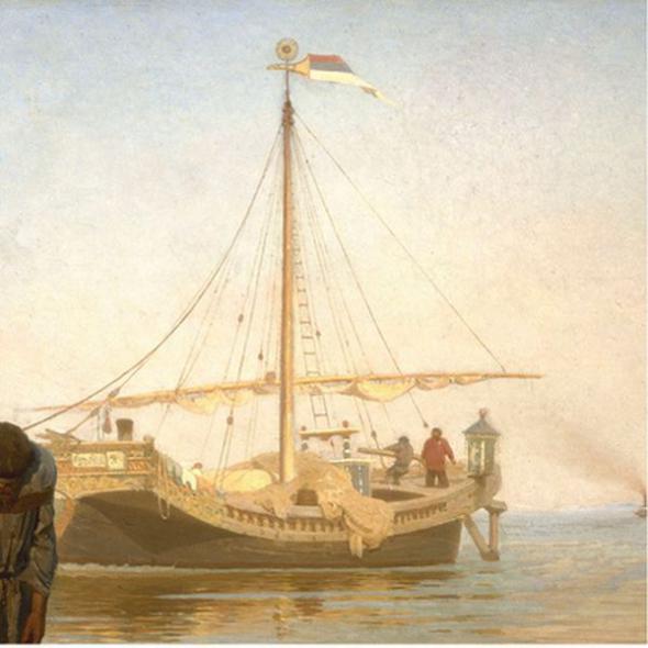 She is a”rasschiva” a boat type used on the River Volga and Caspian Sea from the end of the 18th century till the begin of the 19th century.
