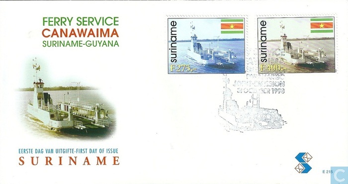 Suriname issued in 1998 two stamps when the ferry CANAWAIMA came in service on the Corentyne River between Suriname and French Guiana.