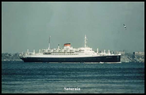 08-10-1943 taken over by the US Navy as troop transport, January 1945 refit commenced as hospital ship FRANCES Y. SLANGER, lasting until June, November released from service as hospital ship. 1946 US Army transport from February until June. Renamed SATURNIA, 01-12-1946 back to 'Italia' SAN. 20-01-1947 first post-war voyage Genoa - New York. Passenger accommodation 1st class:240, cabin class:270, tourist class:860. 1950 Gt:24.346, 08-11-1955 Trieste - New York service, 10-04-1965 laid up at Trieste. 07-10 arrived at La Spezia to be broken up, 04-1966 scrapping commenced by Terrestre Maritima.