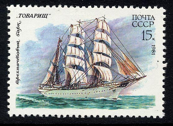 The Soviets ordered Stralsund-based company "B. Staude Schiffsbergung" to raise and salvage her, which after some difficulties was done in 1947 at a cost of 800,000 Reichsmark. She was under restoration between 1948 and 1950. She was then named Tovarishch ("Comrade" in Russian) in 1951 and put into service as a training vessel. Her new home port was Odessa. She participated in many Tall Ships' Races and cruised far and wide on the seven seas. She made a voyage around the world in 1957 and won the Operation Sail race twice, in 1974 and 1976.