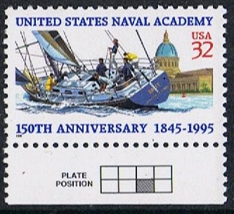 On October 10, 1995, the 150th birthday of the U.S. Naval Academy, the United States Postal Service unveiled a new commemorative stamp honoring the Naval Academy at a public ceremony in Annapolis.