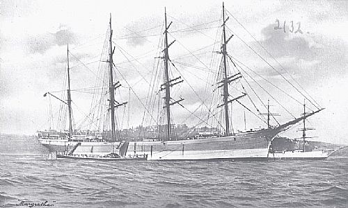 Iron 4mast barque, Gt:2276, Nt:2190, Loa:85,13m. B:12,71m. D:7,41m.