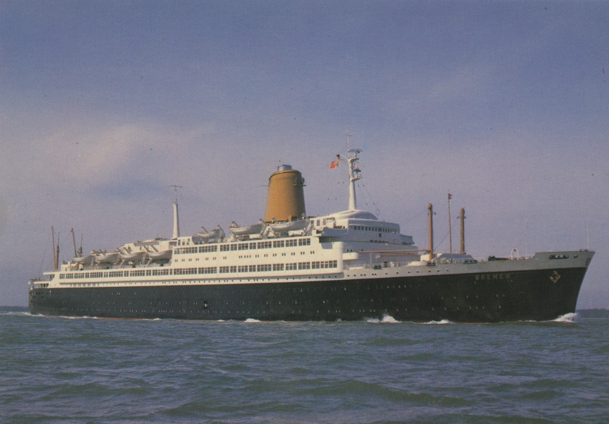 Laid-up at Brest in January 1957, the Pasteur was bought in September of that year by the Norddeutscher Lloyd and was sent to Bremerhaven for an extensive refit. She commenced North Atlantic service between Bremen and New York, with calls at Southampton and Cherbourg, in July 1959. Originally her gross tonnage was 29,523, but considerable alterations and modifications brought this figure up to 32,336 by the time she was ready for service with her new owners.(Info E Argyle SB 11/65) Germany- SG1395