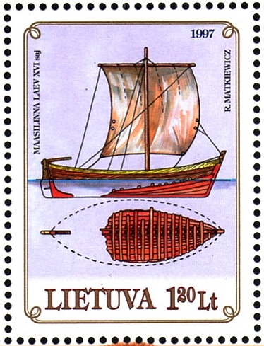 The Maasilinn ship, built about 1560 is one of the oldest wrecks ever found in Estonian waters. The illustration depicted on the stamp shows a reconstruction of what the ship may have looked like.