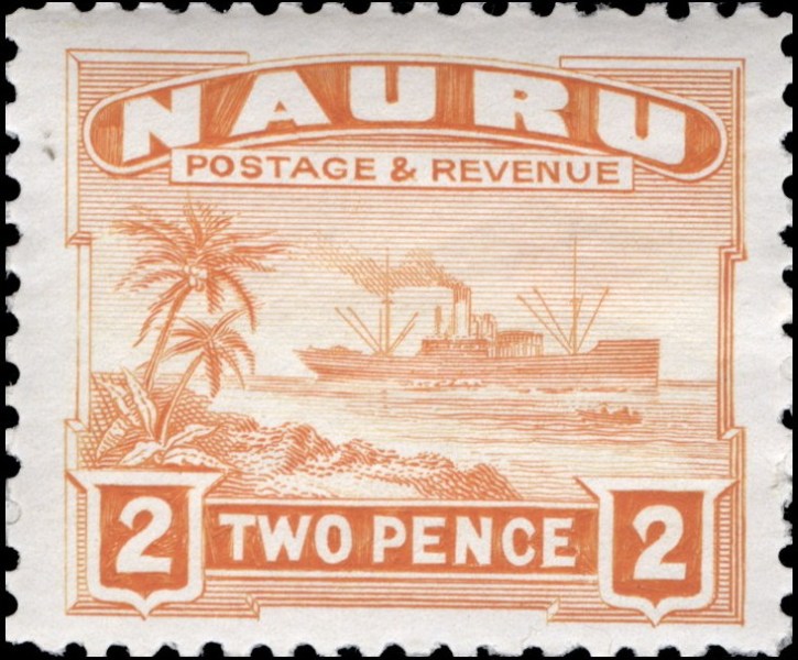 The cargo ship which has appeared on the stamps of Nauru since 1924, is the old Century of the Australian Steamships (Pty), Ltd. (Howard Smith Co.) She was built at Newcastle in 1905, a steel single-screw steamer with a. gross tonnage of 4,313 on dimensions 360ft x 47.9ft x 28ft.