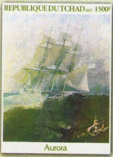 The design of the Tchad stamp is made after painting of P.T.Borispolets: "Frigate"Aurora"in the storm" ._ 1838.