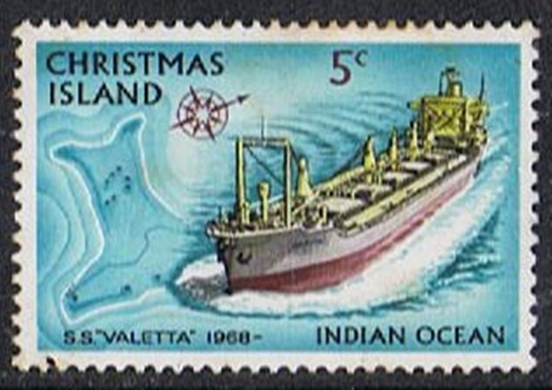 The Valetta, a bulk carrier on charter to the British Phosphate Commissioners. She visits the island at intervals to load phosphate rock for ports in New Zealand and Australia. Built in 1968 by Oresundsvarvet A/B, at Landskrona, Norway for the Oslo firm of Halfdan Ditlev-Simonsen and Co., she has a length of 575 ft., beam of 85.18 ft. and draft of 33.25 ft. She is a motorship of 17,002 gross tons, 9,117 net; and 26,150 deadweight. A 6-cylinder Gotaverken oil engine of 12,900 b.h.p. gives her a speed of 15 knots. SG41