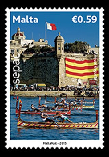 The national days of the 31st March and 8th September are marked by unique activities including boat races called Regattas. The Regatta is held in the Grand Harbour, which serves as a magnificent backdrop for the colourful Maltese boats, driven by rowing teams mainly from the towns around the inner harbour area. A snapshot of these rowing races is captured on the 0.59 stamp. More info on the boats is given on: http://www.bigblade-photos.com/rowing/e ... index.html