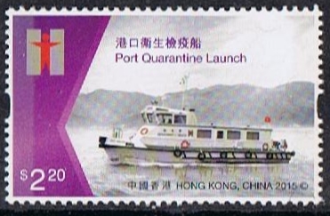 The $2.20 stamp shows a port quarantine launch, "Port Health", from the Department of Health. It commenced service in 2003 and mainly takes personnel including doctors, nurses and health inspectors, to vessels within Hong Kong waters to perform port health services. "Port Health" took Port Health Officers to board a cross-boundary vessel in order to examine and assess the condition of a crew member suspected of contracting Severe Acute Respiratory Syndrome (SARS) in 2003.