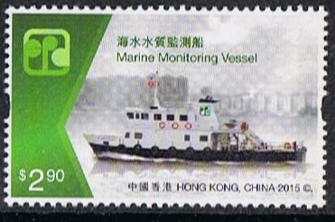 The $2.90 stamp portrays the marine monitoring vessel "Dr. Catherine Lam" of the Environmental Protection Department. First put into service in 1993, its main function is to collect seawater and sediment samples for scientific analyses, so as to monitor Hong Kong's marine water quality. It is named after Dr. Catherine Lam in memory of the important role she played in the planning of the marine monitoring programme of the Environmental Protection Department, as well as her significant contribution to phytoplankton and red tide research in Hong Kong.