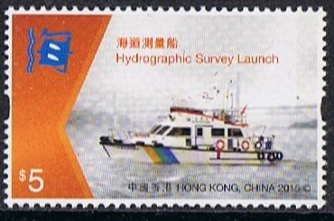The $5 stamp presents the hydrographic survey launch "Hydro 1" operated by the Marine Department. In service since 2003, it is mainly deployed to carry out hydrographic surveys in Hong Kong waters, monitor changes in the water depths of major waterways and provide mariners with the most up-to-date nautical information necessary for safe navigation. "Hydro 1" assisted in locating a container that had fallen overboard from a cargo ship during a typhoon in 2012.