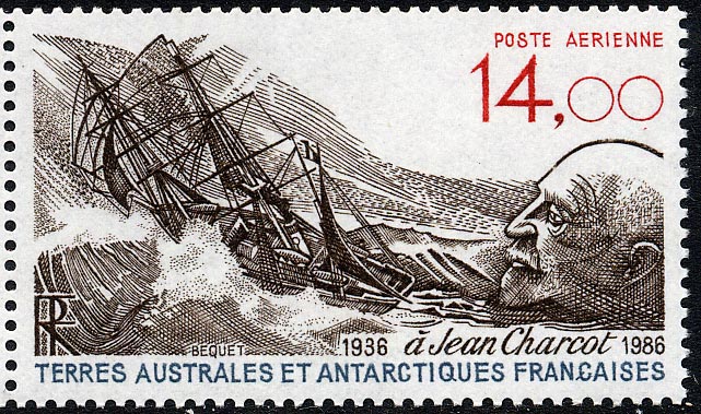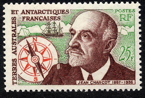 The stamp is a summary of the universe of Jean-Baptiste Charcot: the POURQUOI PAS? The polar-regions, the seagull Rita who was his pet.