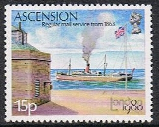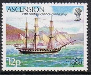 This four stamps and M/S were issued by Ascension Island in 1980 for the “history of mail transport to and from the island. The Ascension post gives by the issue.