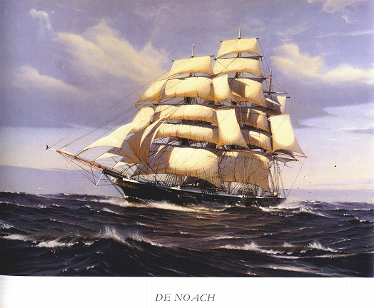 Тhis beautiful medium clipper, launched at Kinderdijk in 1857, was built and owned by the remarkable Fop Smit, grand old man of a shipbuilding and shipowning family famous throughout the world. Noach was the first of no fewer than six grand clippers destined to bear the same name, all of them built and owned by one or another of the Smits, but none of these successors ever gained more fame and she has always been regarded as easily the best of the lot.
