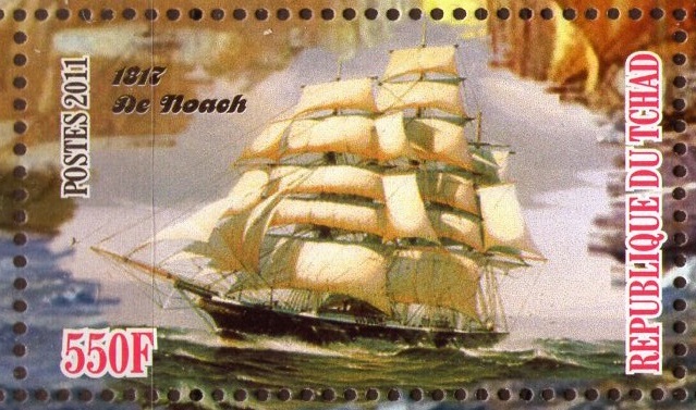 A ship of 892 old tons, Noach had a wooden hull with little or no deadrise, not much keel, and a rounded stern. She was 47.5 metres in length and, with a width at maximum of 11.2 metres, rather broad in the beam. Nevertheless, and even though she lacked the fine sharp entrance and elegant narrow grace of the extreme clippers then being built in British yards, she was without doubt an extremely handsome vessel. With her distinctive figurehead of an outwards-gazing Noah, she was richly decorated at bows and stern with very fine carved-and-gilded scrollwork, and the fitting-out of her well ventilated passenger accommodation was done without regard to expense.