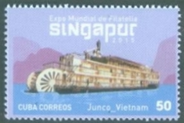 This stamp of Cuba shows us a stern paddle steamer, with the inscription “junco”, by a google search I found that she is the EMERAUDE a replica of a vessel which was sailing in Vietnam waters from 1910 till World War II