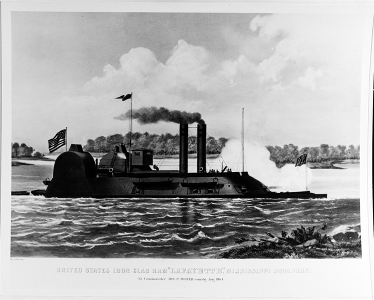 The first USS LAFAYETTE was a side wheel steamer, converted to an ironclad ram, in the United States Navy during the American Civil War. LAFAYETTE was built at St. Louis, Missouri, in 1848 as ALECK SCOTT (often spelled Alick Scott). She was purchased by the War Department as FORT HENRY on 18 May 1862 for use in the western flotilla. She was converted to an ironclad ram at St. Louis. Renamed LAFAYETTE on 8 September 1862, she was transferred to the Navy with the entire western flotilla by executive order on 1 October 1862. She was commissioned at Cairo, Illinois, 27 February 1863, with Captain Henry A. Walke in command.