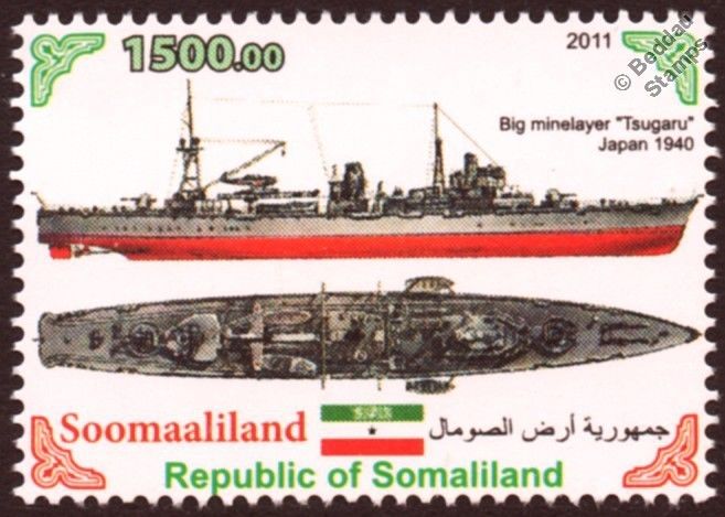 Minelayer, displacement:4064/4330 tons, Loa:124,50m. Lbpp:113,60m. B:15,60m. Draft:5,49m. 4 boilers, 2 turbines:9000 hp, 2 shafts, 20 kn. range:9000 nm/10 kn. complement:445, armament:4 - 12.7 cm./40 Type 89 naval guns, 4 - Type 93 13 mm. AA guns, 500 - Type 6 naval mines, 1 - Type 94 depth charge thrower, 6 - DC rails.