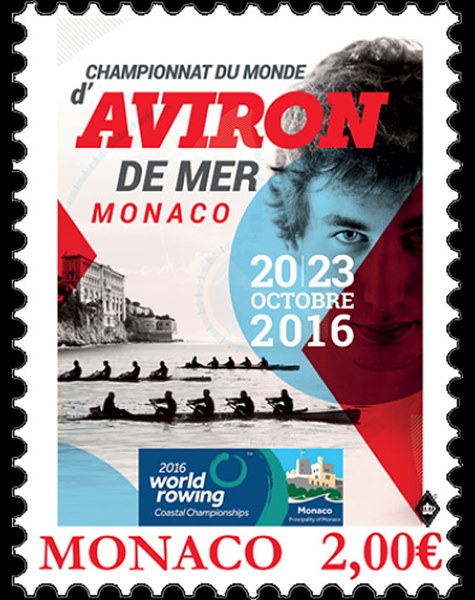 Monaco issued in 2016 1 stamp for the World Rowing Coastal Championship which will take place in October in Monaco. The stamp shows us quad rowing boat with four rowers and 1 coxswain. The boat have a length of maximum 10.70m, with a weight of 150 kg.