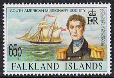 The Falkland Islands Post issued in 1994 a set of stamps for the South American Missionary Society, the 65p stamp shows us the wooden missionary schooner ALLEN GARDINER which was built in 1854, at the Kelly’s yard in Dartmouth,