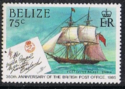 The stamp of Belize shows us a brig and as given on the stamp the packet ship DIANA is depict.