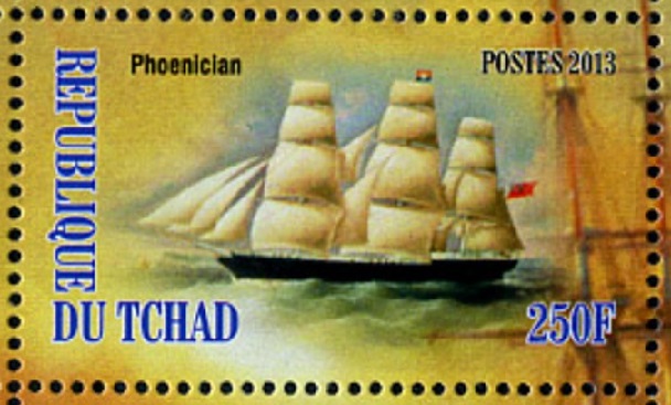 Clipper ship Phoenician'1847. The design stamp is made after painting of W.Webb.