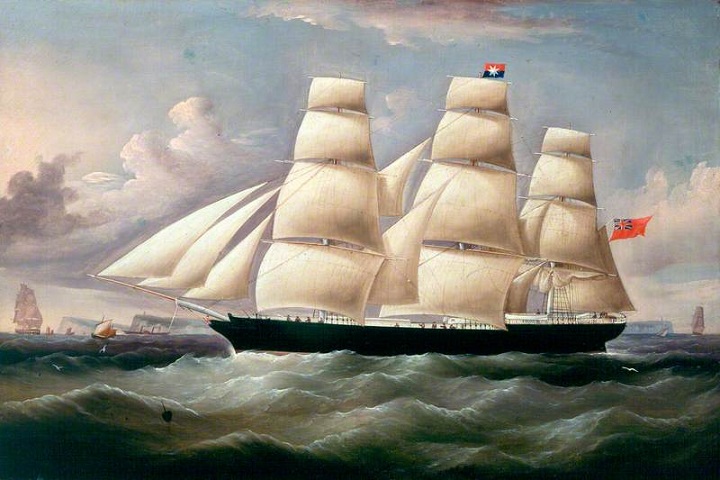 1849 – 50 London to Sydney in 90 days, via Cape of Good Hope. She was the first clipper ship that arrived in Australia, arriving in Port Jackson on 21 July 1849. Her return voyage via Cape Horn she made in 88 days