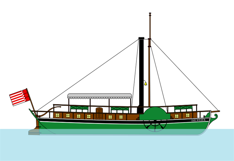 The paddle steamer DIE WESER was put into operation on May 6, 1817 and is the first steamship built by a German ship builder and operated by a German shipowner. It sailed between the years 1817 and 1833 in a service between Bremen and Brake. From 1827 onwards, the ship was used in the service from Bremen via Brake to Geestemünde .