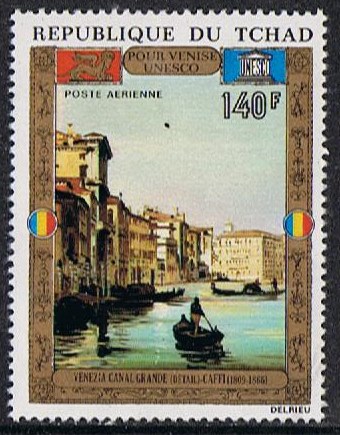 The stamps issued by Monaco in 1972 shows us details of paintings of Venice of which two stamps have “gondola” on it.