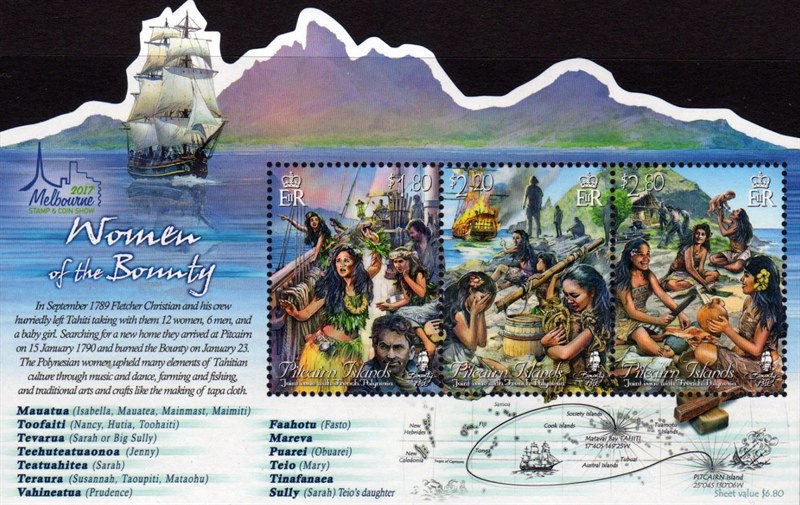 It is for these Polynesian women forgotten by history that this stamp about the Vahine of the BOUNTY is dedicated... Josiane Teamotuaitau, PhD in Polynesian Civilization This joint issue with Pitcairn islands illustrates the party
