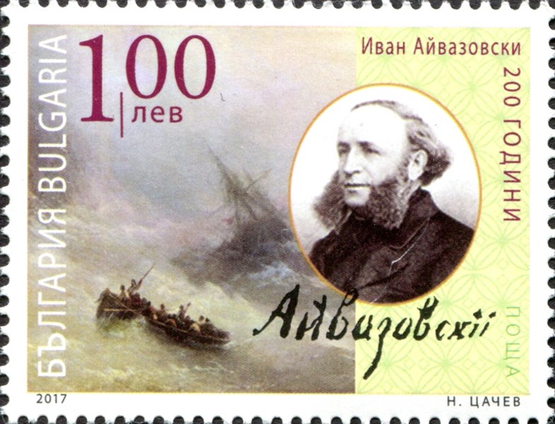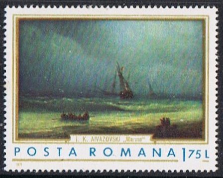 The 1,75 lei stamp issued by Romania is also painted by Ivan Aivazovsky and the original is in the National Museum of art in Boekarest.