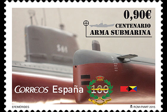 Spanish CORREOS has presented today a stamp of its “Efemérides” series which commemorates the 100th anniversary of the establishment of the submarine fleet and records the birth of this organization. A novel feature in this presentation was the fact that on the first-day envelope appears on the obverse the bow of a submarine, and on the reverse, the stern.