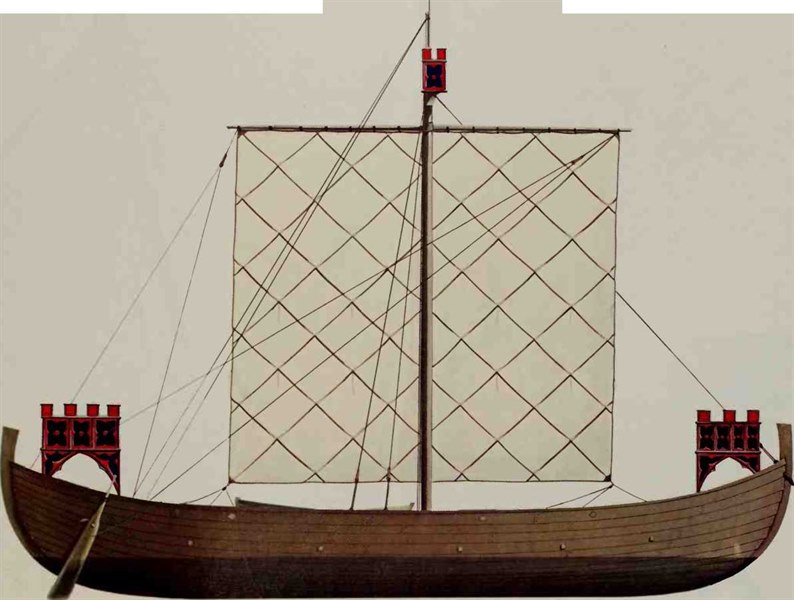 This vessel carried a fighting castle near the bow and stern.