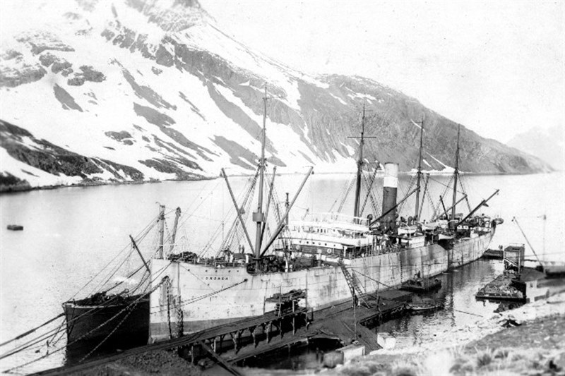 The site of Leith Harbour had been reconnoitred the previous year by Henrik Henriksen, who became the first manager. The station was built at the head of the cove, at a site known as Jericho, but after two avalanches and a rock-fall, which killed three men, much of the station was relocated to its present position, one kilometre southward. A second ship CORONDA arrived on November 30th, incidentally bringing South Georgia's first magistrate James Innes Wilson, and the first whale was caught on December 10th by the whale-catcher SEMLA.