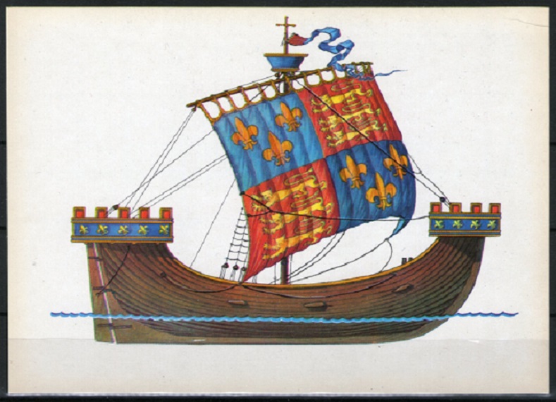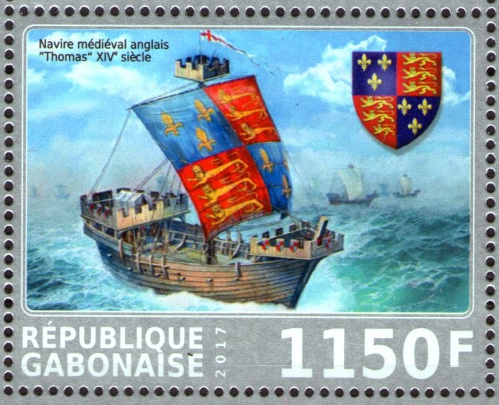 On the stamp-ship "Thomas", I did not find such a ship, but on the construction and sail I assumed that it belongs to the time of Richard III.