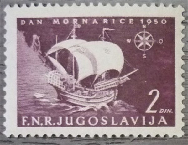 Stanley Gibbons gives that a galleon is depicted on the Yugoslavian stamp, Navicula gives a carrack and I believe she looks more like a carrack than a galleon.