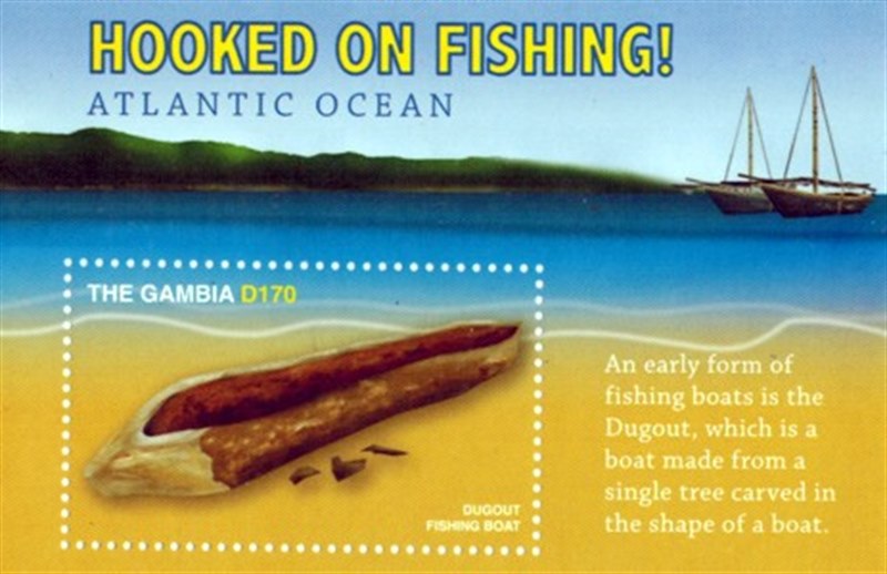 Gambia issued in 2018 two miniature sheets for “Hooked on Fishing” which shows one D100 stamp and in the margin of the D170 , fishing vessels which are actually used in formerly times to carry groundnuts (peanuts) on the Gambia River down from the plantations to the merchant cargo ships in Bathurst. I am not sure if she are still used for this work in 2018.