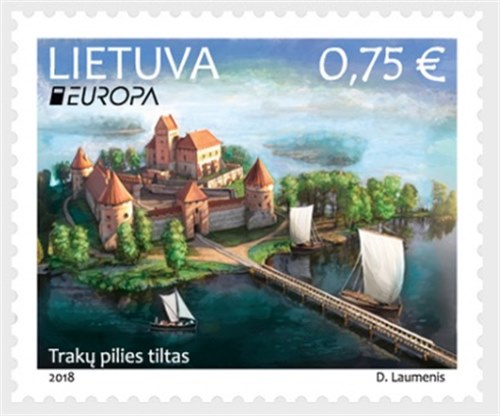 For the Europa issues, Litauen issued two stamps in 2018 of 0.75 Euro, by the stamp with the Trakai Castle Bridge the Litauen Post gives.