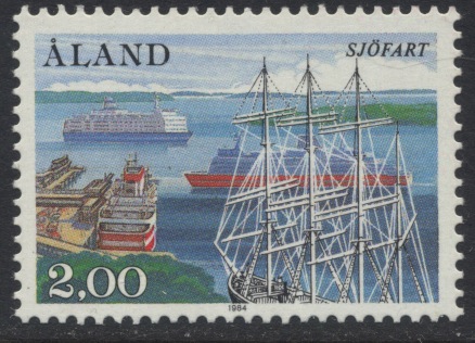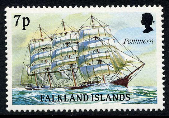To commemorate the centenary of the founding of the port of Marieharmn, a town which will always be remembered for its famous fleet of deep sea sailing vessels owned by Capt. Gustav Erikson, the Finnish Post Office has issued a single 30 markka stamp showing the 4-masted barque Pommern, last survivor of the fleet.