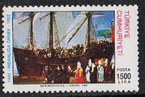 Turkey issued one stamp in 1992 which show the arrival of the Sephardic Jews immigrants in Turkey in 1492.