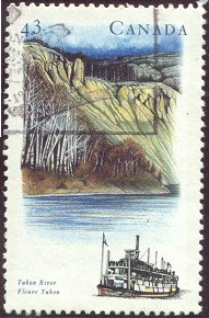 When Europeans first set foot in Canada, they were faced with a wilderness barrier of trackless forests. Fortunately, this new land was also crisscrossed by many grand rivers, and these became the early routes of discovery, settlement and growth. The third set of Canada's River Heritage stamps, released August 10 in commemorative booklet form, features five of Canada's important heritage rivers: the St. John; the St. Lawrence; the Red; the Fraser; and the Yukon. The Yukon River, the 10th longest in the world at 1368 kilometres, starts in Tagish Lake along the British Columbia-Yukon border, just a few kilometres from the Pacific Ocean, then flows north-west into Alaska, enters the Arctic Circle near Fort Yukon, finally turning south-west and emptying into the Bering Sea at Norton Sound. The river has been a route to promised riches - as it was during the famed Klondike Gold Rush - and a channel of migration. It is believed that at least 15,000 years ago, Indians trecked across the land bridge from Asia and moved southward along the Yukon River, as did the Arctic-Mongoloid ancestors of today's Inuit and Aleuts. Ironically, this oldest route of immigration was the last major river of North America to be discovered by Europeans - Russians from Alaska first saw it in 1834. Canada Post Corporation's Yukon River stamp depicts "hoodoos" in bluffs near Hootalingua and in a vignette, shows the sternwheeler, KLONDIKE.