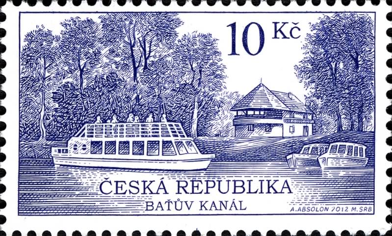 The Czech Republic issued one stamp for the Bat’a Canal, the stamp shows us pleasure boats and a small passenger vessel with tourists on board for a sightseeing trip on the canal.