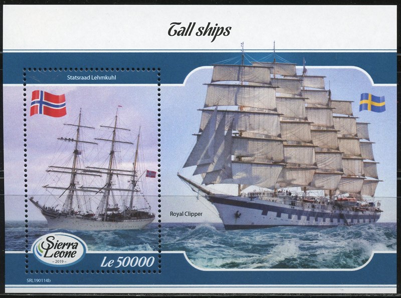 Sierra Leone issued in 2019 two miniature sheets which depict tall ships.