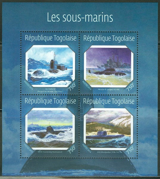 Togo used in 2014 a sheet with 4 stamps which shows us four submarines.