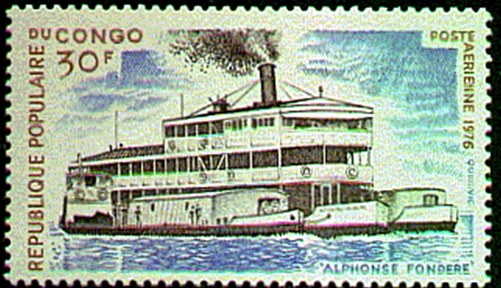 The Congo (Brazzaville issued in 1976 a set of stamps showing vessel used on the River Congo.