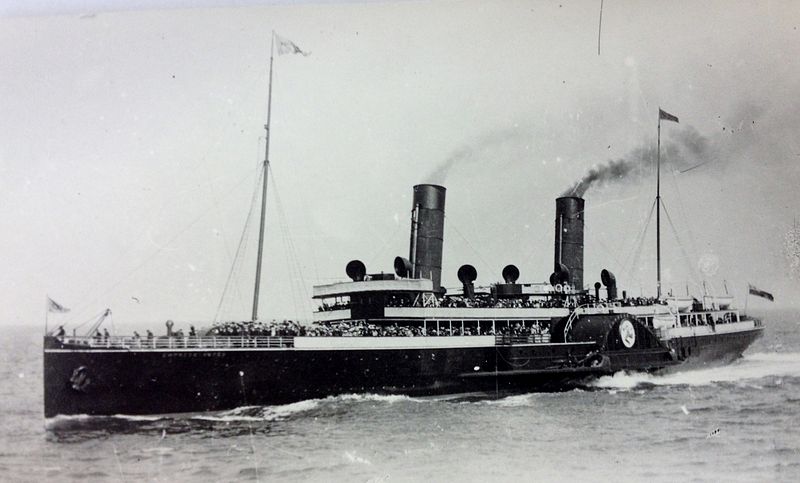 SS (RMS) EMPRESS QUEEN was a steel paddle steamer, which was the last of its type ordered by the Isle of Man Steam Packet Company. She was chartered by the Admiralty in 1915 and used for trooping duties until she ran aground off Bembridge, Isle of Wight, England, and was abandoned.