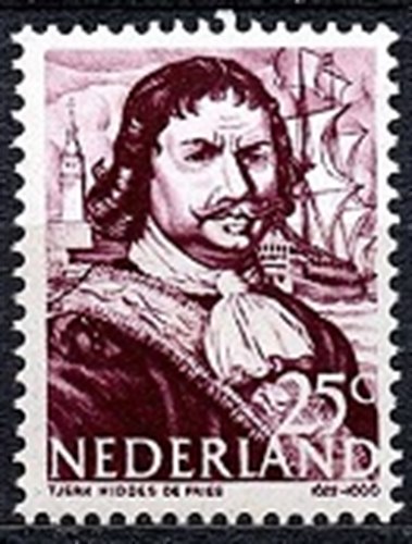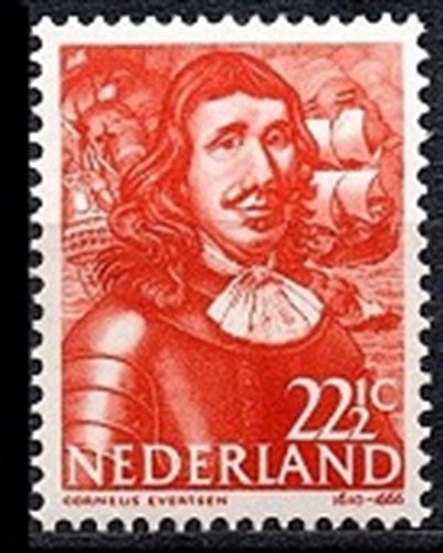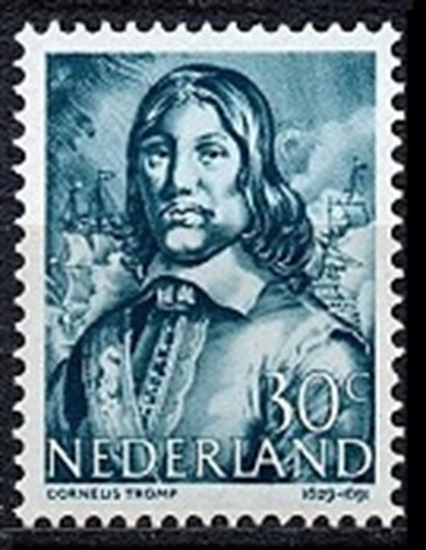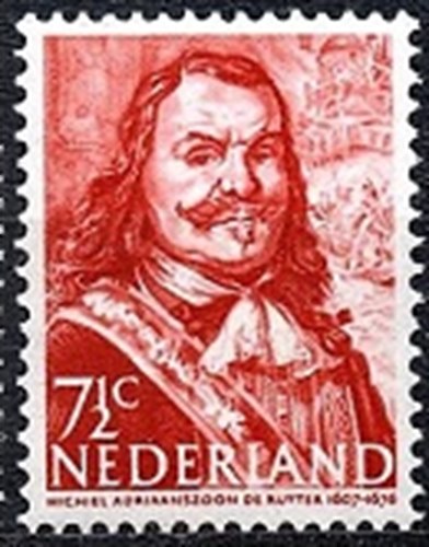 In 1943-44, the Netherlands issued a series of most interesting stamps depicting famous Dutch Admirals. In the background on each stamp, there is shown an early type of sailing vessel which, conceivably, could be associated with the Admiral portrayed. The question has been answered by the Historical Section of the Netherlands Ministerie van Defensie of the Marine in a letter to Norman Rubin dated 7 May 1976. The letter states, in part.”…. according to the Netherlands Postmuseum, it is not possible to identify the ships drawn in the background on the stamps with pictures of famous Dutch Admirals. However, the following ships, among many others, can be connected with the flag officer in question.